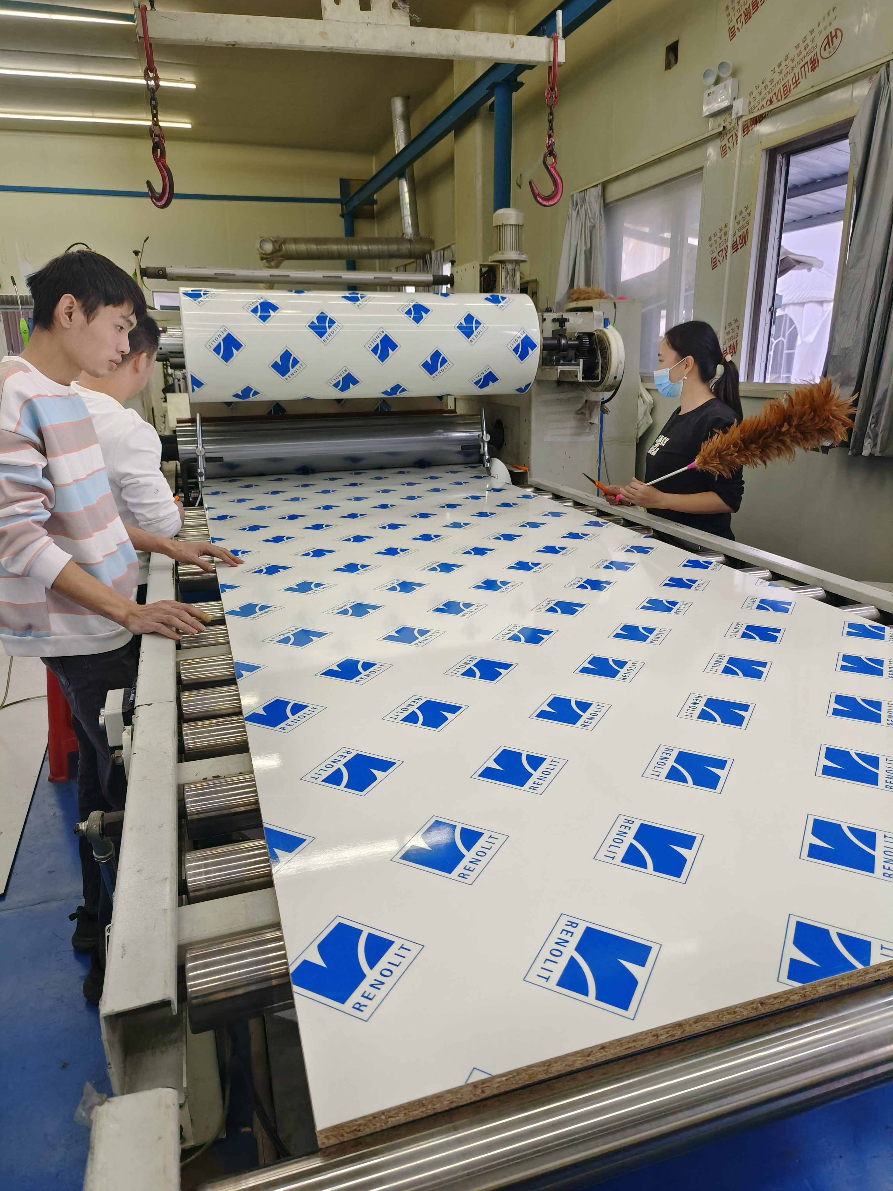HAOSAISI NEW MATERIAL se especializa en la producción de material decorativo para la industria de la madera. La más alta calidad de los componentes Renolit Premier Matt que ofrece nuestra empresa ha sido ampliamente aceptada por clientes nacionales y extranjeros. La PELÍCULA DE PET se lamina sobre tableros MDF, tableros OSB o tableros de madera contrachapada súper refinados utilizando pegamento termofusible ALEMANIA KLEIBERIT PUR en un ambiente de sala limpia para garantizar una calidad reflectante similar a un espejo.