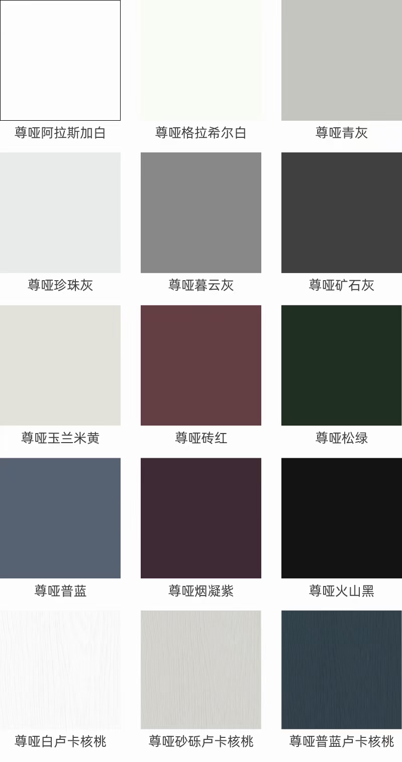 Color | Colores lisos con efectos Premier Matt o High Gloss; Colores pintados con relieve de madera en Premier Matt |